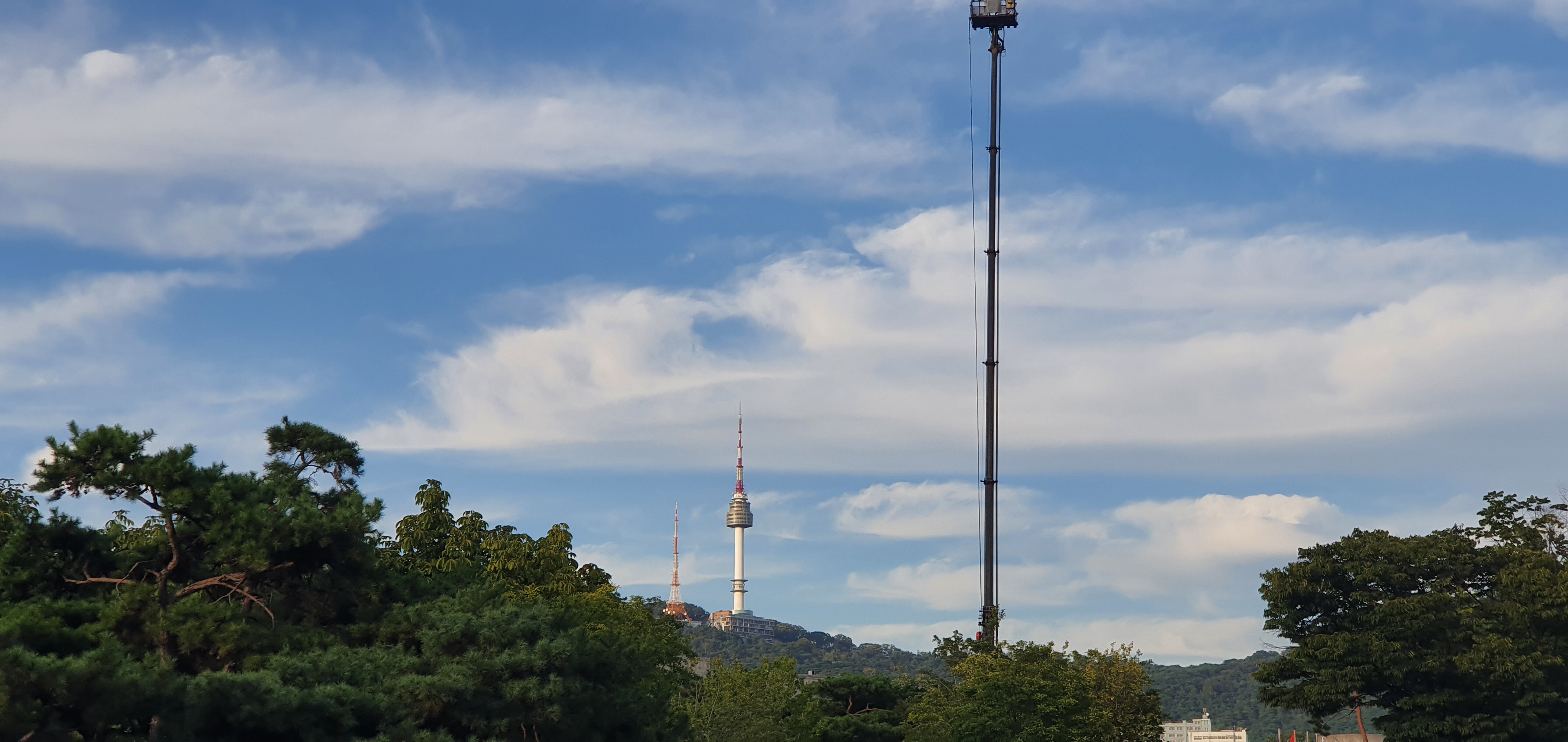 멀리 남산타워가 보이고 가까이는 녹화장이다.